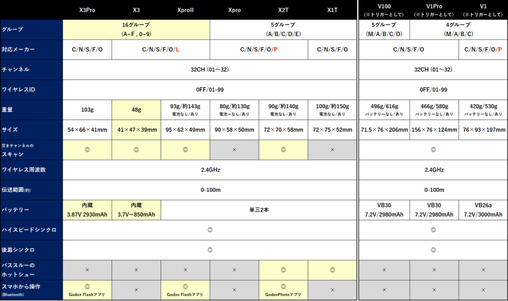 ただ、基本性能としては共通する項目が多い。比較参考としてトリガーとして使えるGodoxのストロボも載せてみた。