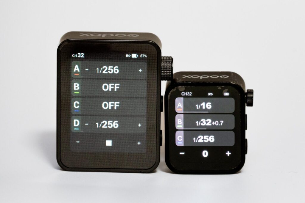普段から3グループ以内しか使わない場合は気にする必要はないが、多灯で複数のストロボを配置してA~Eをフルで使う方は、1画面で表示できる情報量の多いXpro系が圧倒的に使いやすかった。