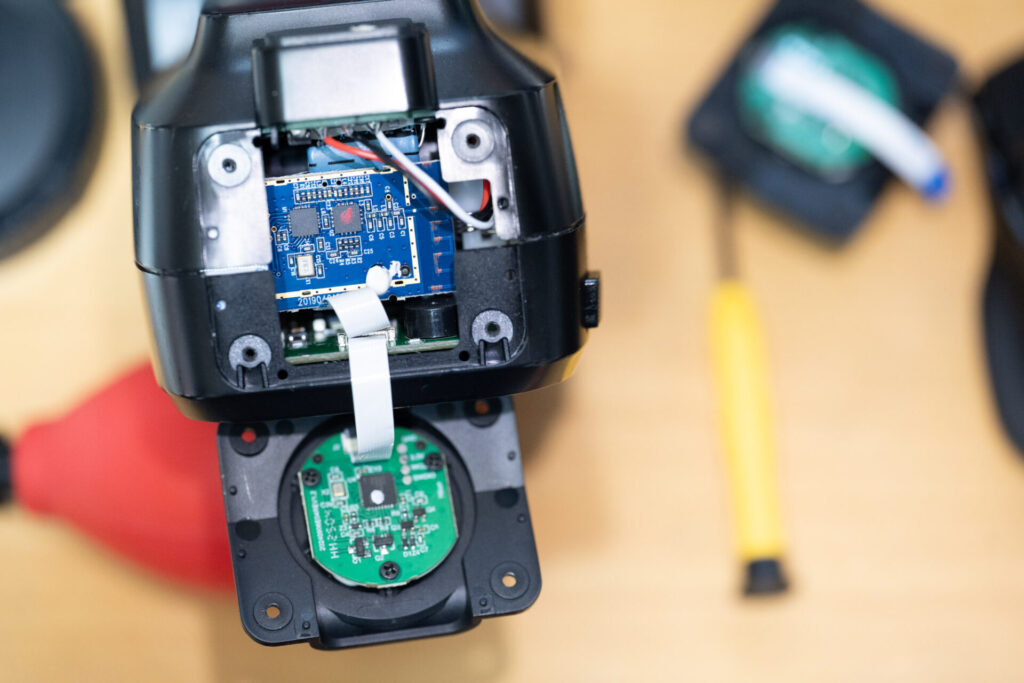 ネジ4本を取り外し、フラットケーブル1本接続するだけの簡単な仕組みとなっている。